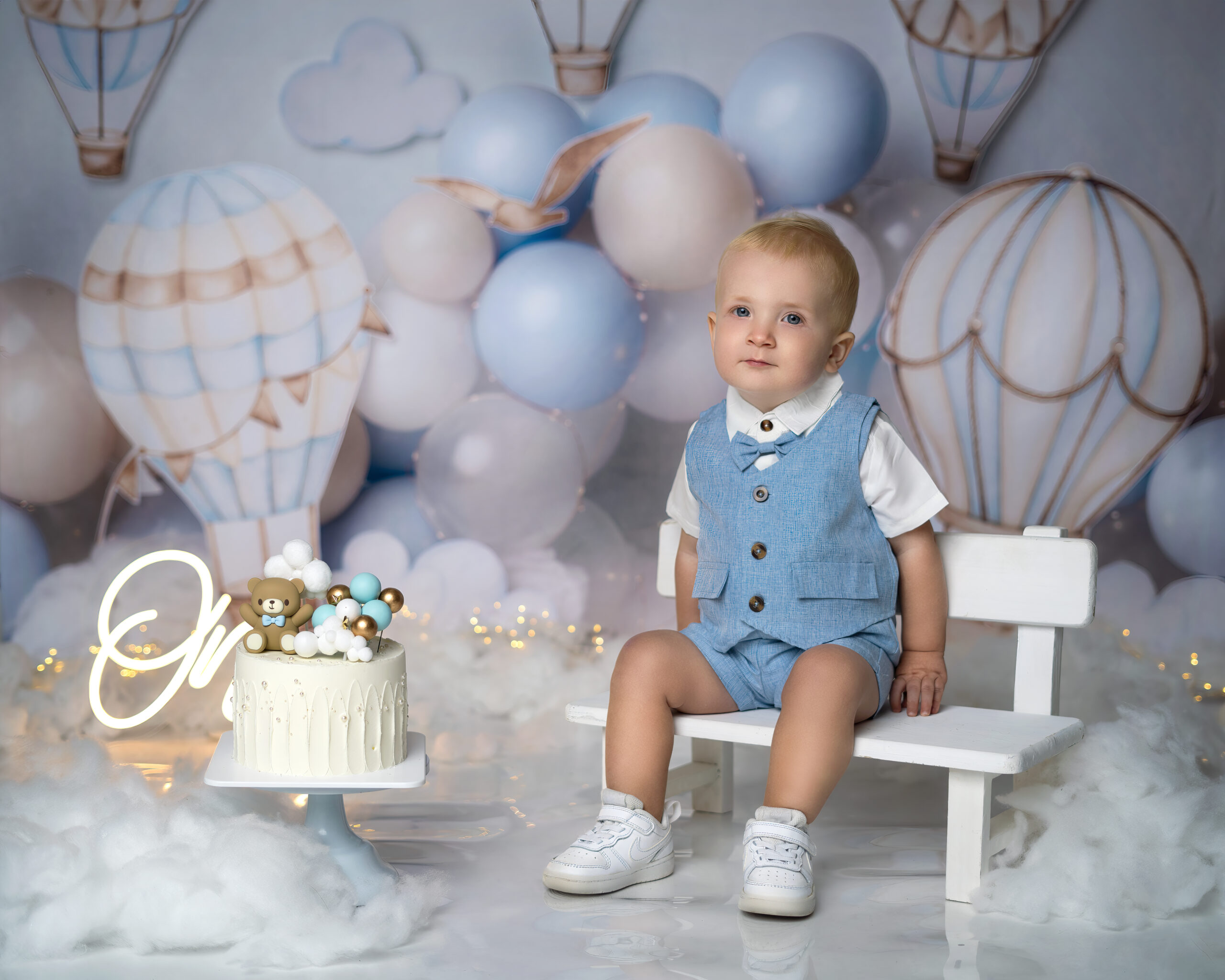Ein liebevoll zusammengestelltes Setup, das speziell für Ihr Kind entworfen wird. Von traumhaften Hintergründen über abgestimmte Outfits bis hin zu einer Torte – jedes Detail wird auf Ihre Wünsche abgestimmt.